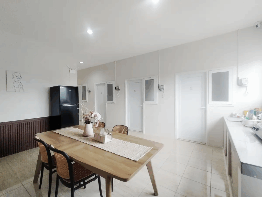 Fasilitas bersama termasuk dapur dengan kitchen set, kitchen sink, kompor, kulkas, dan dispenser, serta area jemur, musala, hingga rooftop. Bayangkan nyamannya menikmati senja dari ketinggian kost putri Semarang ini!