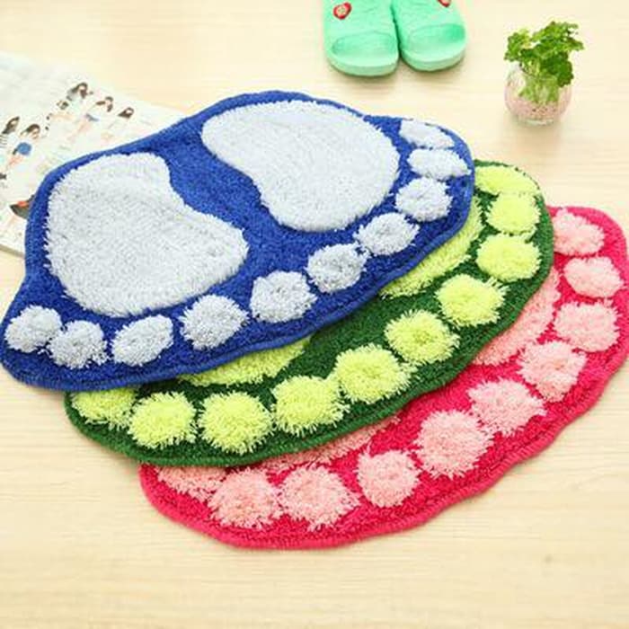 Keset yang satu ini unik dan lucu banget karena berbentuk jejak kaki yang lengkap, kiri dan kanan. Kalau sedang iseng, kamu bisa sesuaikan kakimu di kedua jejak itu.