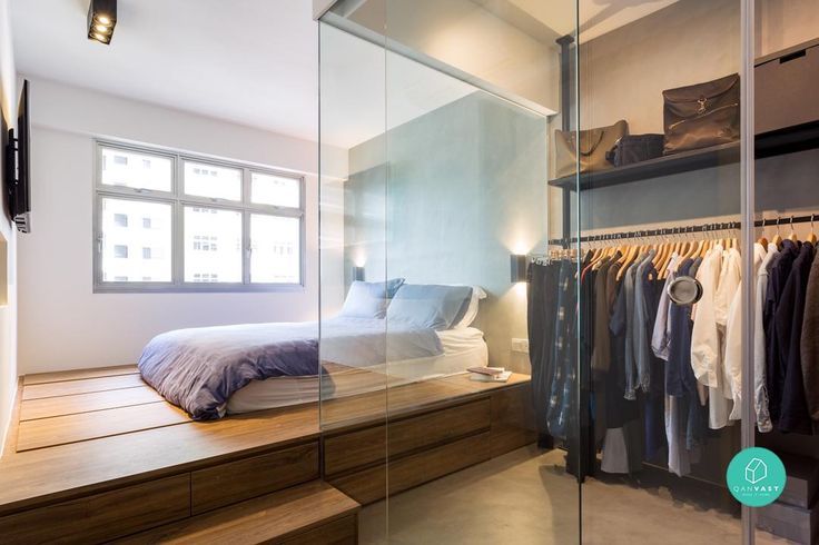 Kamu bisa juga memberi kaca sebagai sekat antara tempat tidur dengan walk in closet. Selain mudah dikerjakan, kaca akan membuat closet-mu terlihat menarik, modern, dan unik.