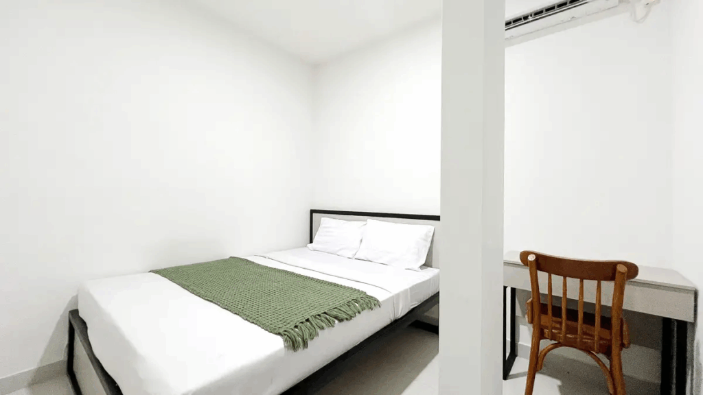 Setiap kamar sudah fully furnished dengan tempat tidur, lemari, AC, dan WiFi kencang agar kamu bisa bekerja maupun belajar tanpa hambatan. Tersedia juga kamar mandi dalam dengan shower dan wastafel untuk menunjang kenyamanan sehari-hari.