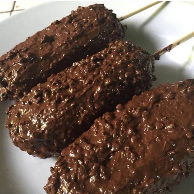 - Lapisi corn dog dengan cokelat selagi hangat.