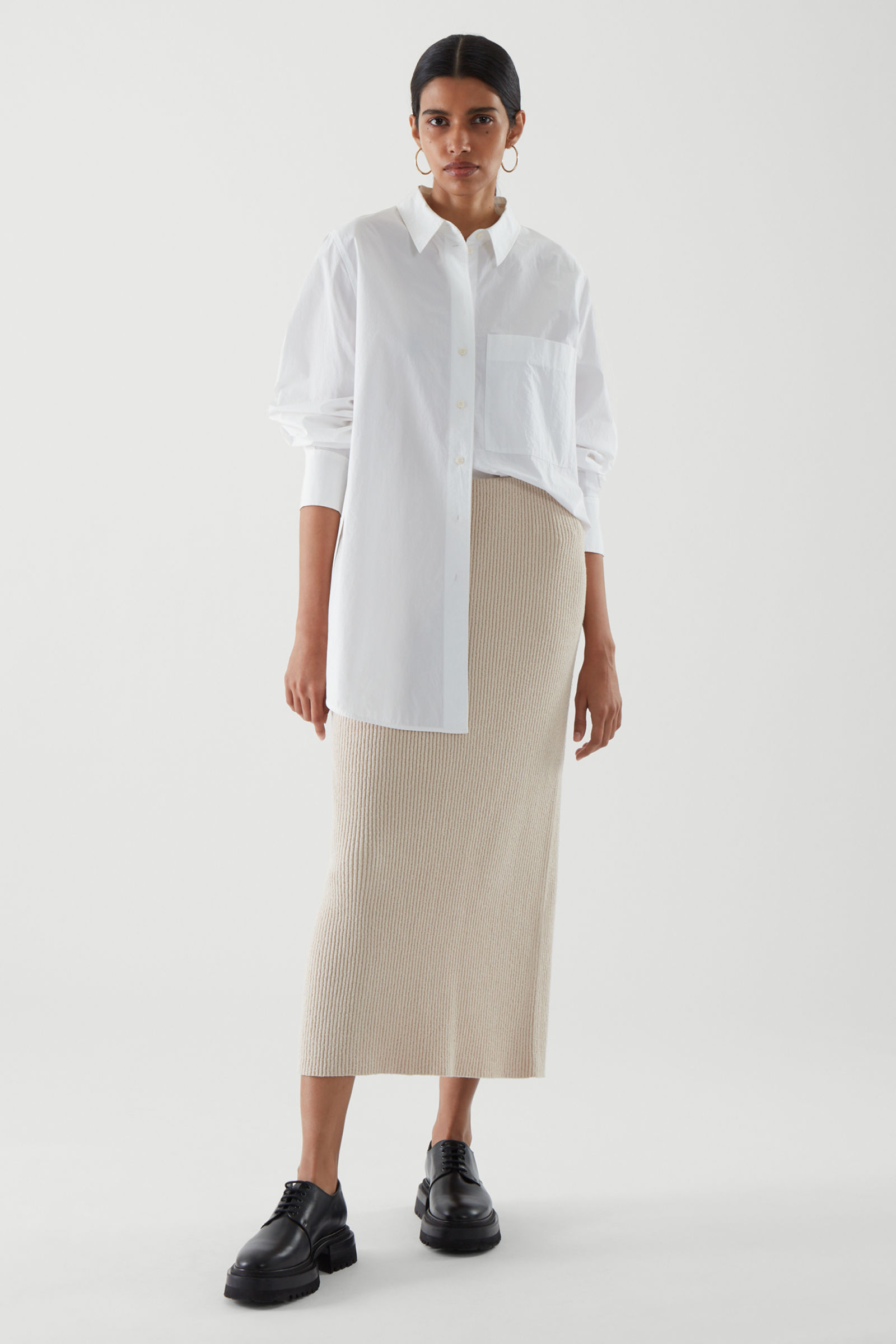 6. Gaya monokrom untuk padanan rok span plisket rajut