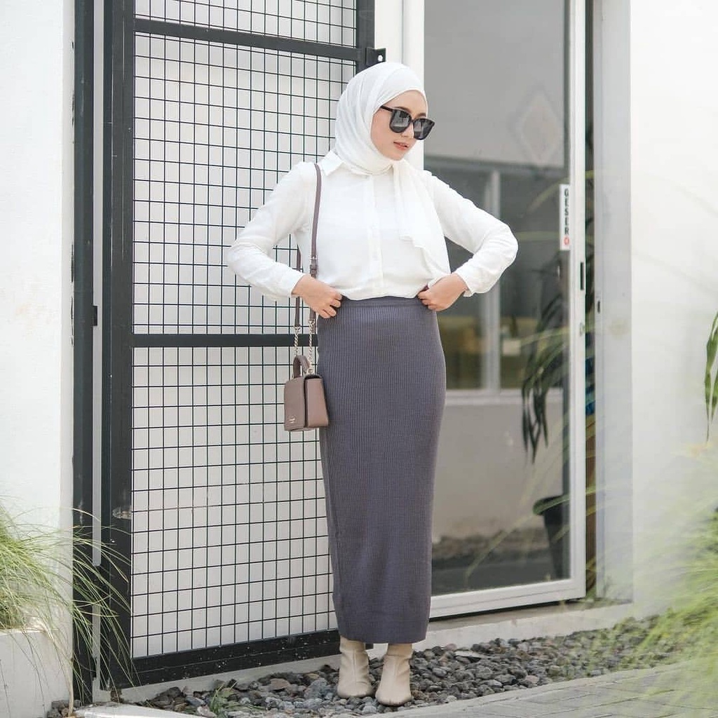 Buat kamu yang ingin tampil anggun, kamu bisa memanfaatkan koleksi blouse-mu untuk dipadukan dengan rok span plisket rajut, nih. Buat yang nggak berhijab coba kenakan rok model midi dengan warna gelap, atau rok model maxi bagi hijabers.