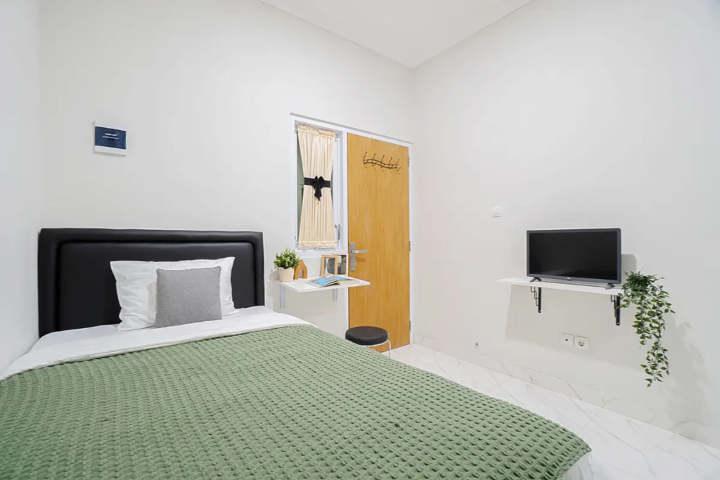 Ada juga fasilitas pendukung lainnya seperti AC, Wi-Fi, dan TV yang sudah dilengkapi oleh Smart TV. Nggak hanya itu, ada juga dapur yang bisa kamu gunakan untuk masak makanan dan area komunal untuk kumpul bersama penghuni lainnya.