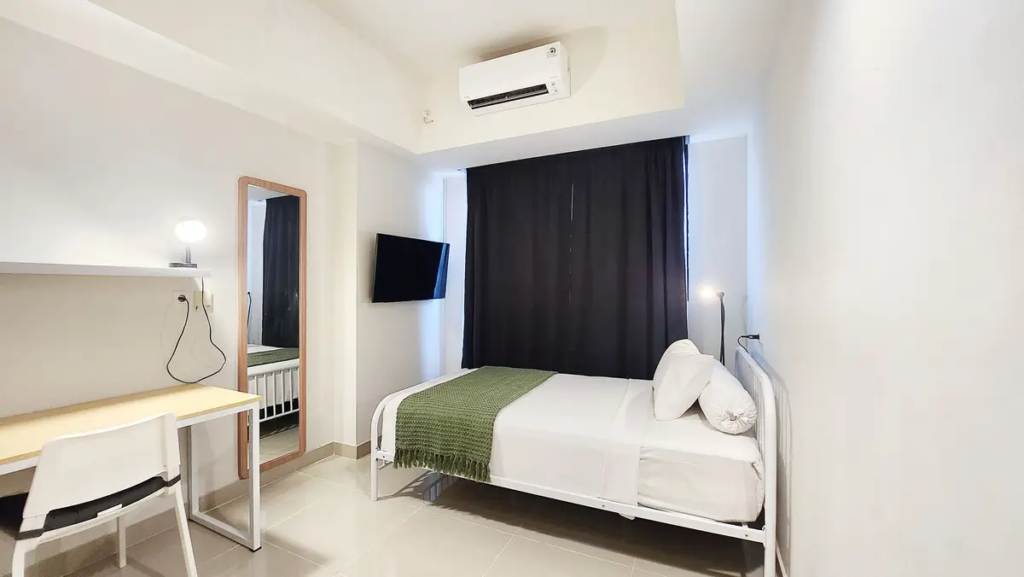 Selanjutnya, kamu juga bisa memilih unit Apartemen Dave Depok – Studio City View #4 yang juga punya fasilitas lengkap. Dengan sewa apartemen ini, kamu akan mendapatkan unit dengan kamar tidur bertipe loft yang sudah fully furnished dengan AC, TV, area makan, balkon, serta kamar mandi yang bersih.