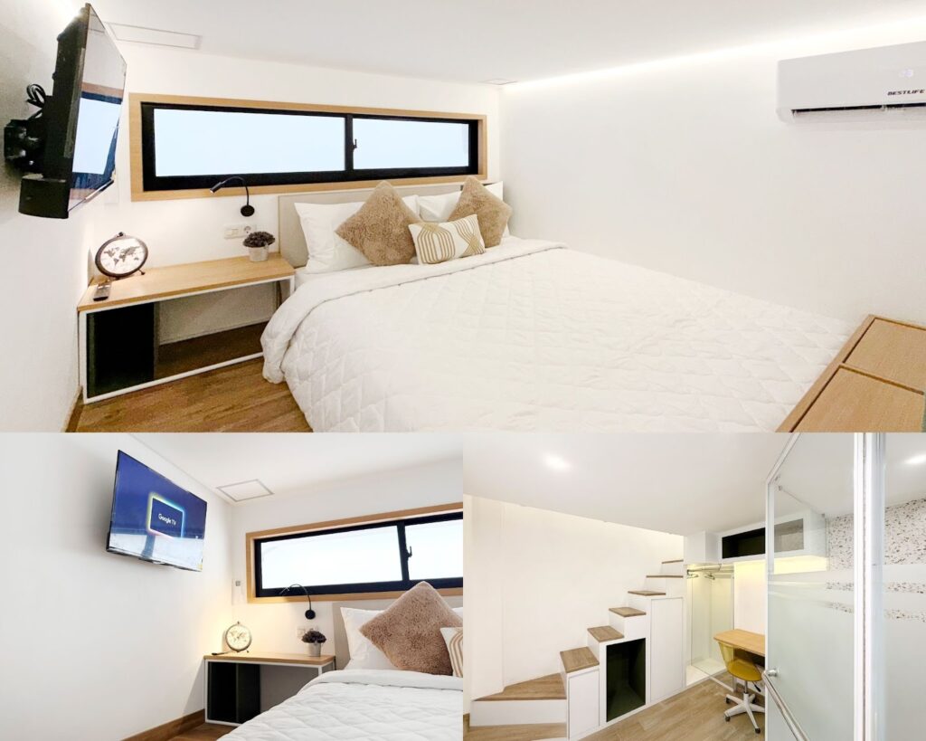 Rooms at the property are fully furnished and equipped with en suite bathrooms, air conditioning, and high-speed WiFi. Several room types are available, including Regular Loft Queen A and B units featuring a mezzanine concept to maximize vertical space, as well as Pocket Single A rooms designed for compact and efficient living.
