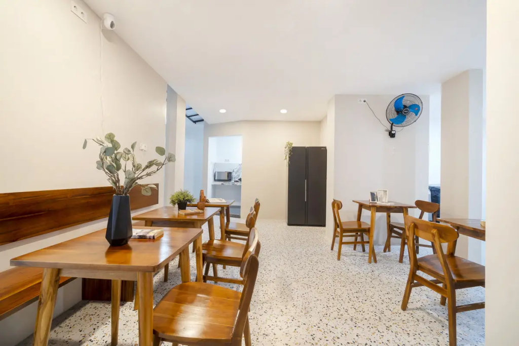 Untuk area bersama, tersedia ruang makan dan dapur bersama yang bisa digunakan kapan saja. Kamu bisa memasak sendiri, menghemat pengeluaran, sekaligus menikmati suasana kebersamaan dengan penghuni lain.