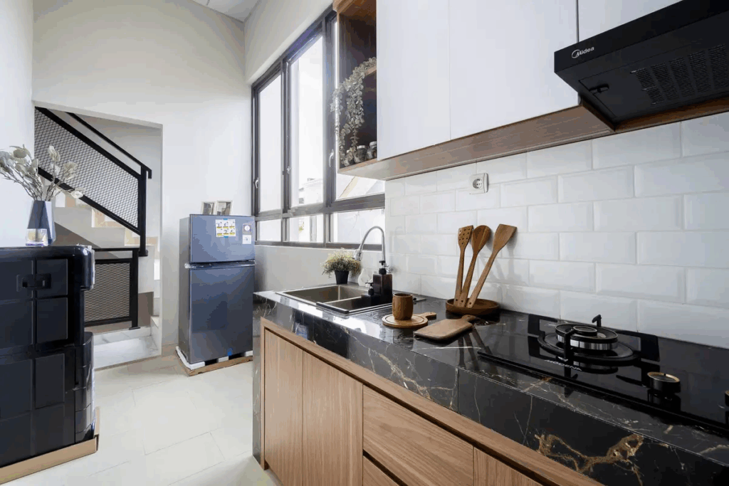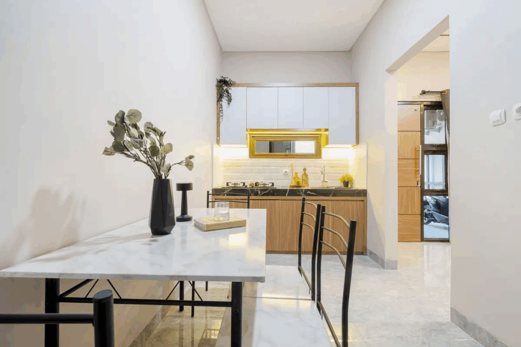 Kamu punya ruang bersama untuk memasak, ngobrol, bahkan mengerjakan tugas dan berdiskusi tanpa menginvasi wilayah pribadi di kamar tidur. Asyik, kan?