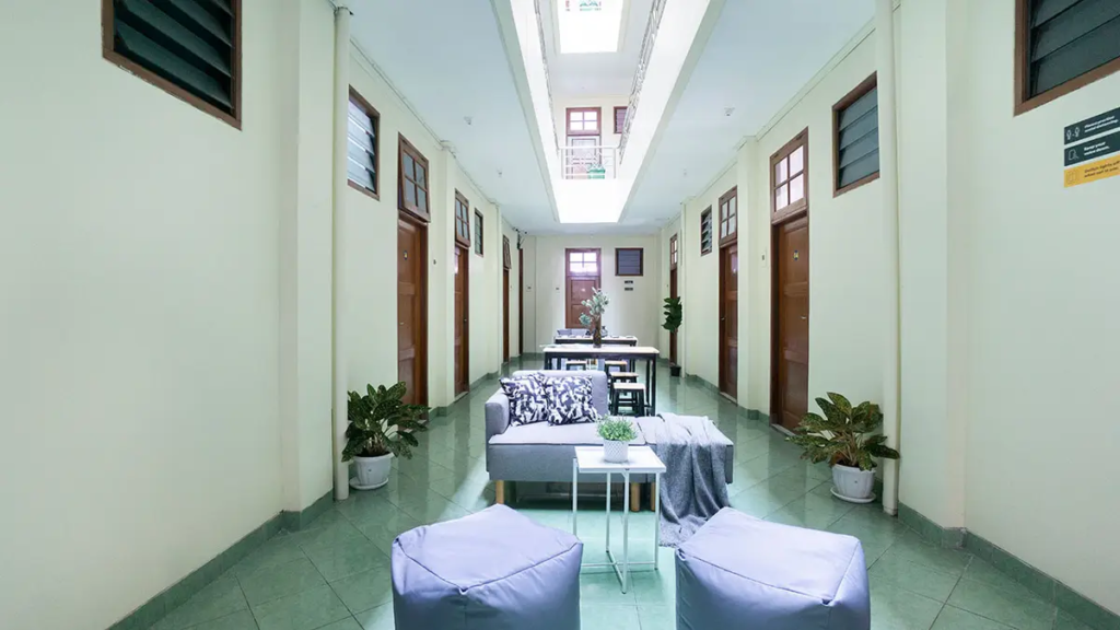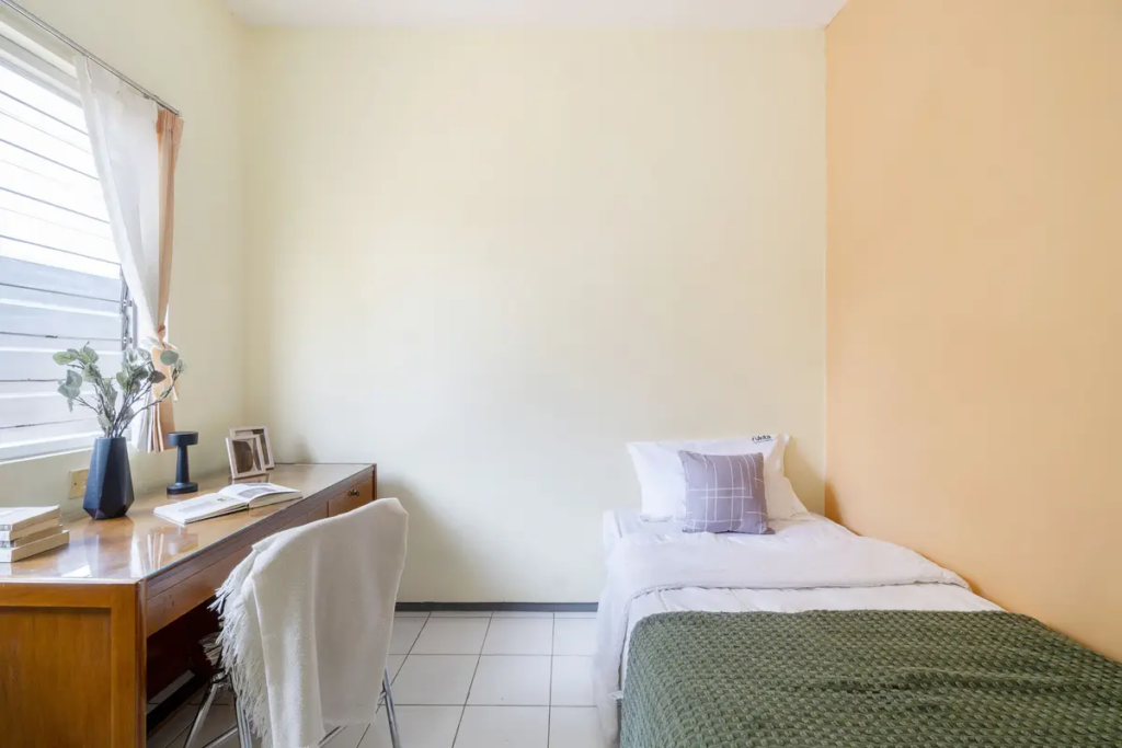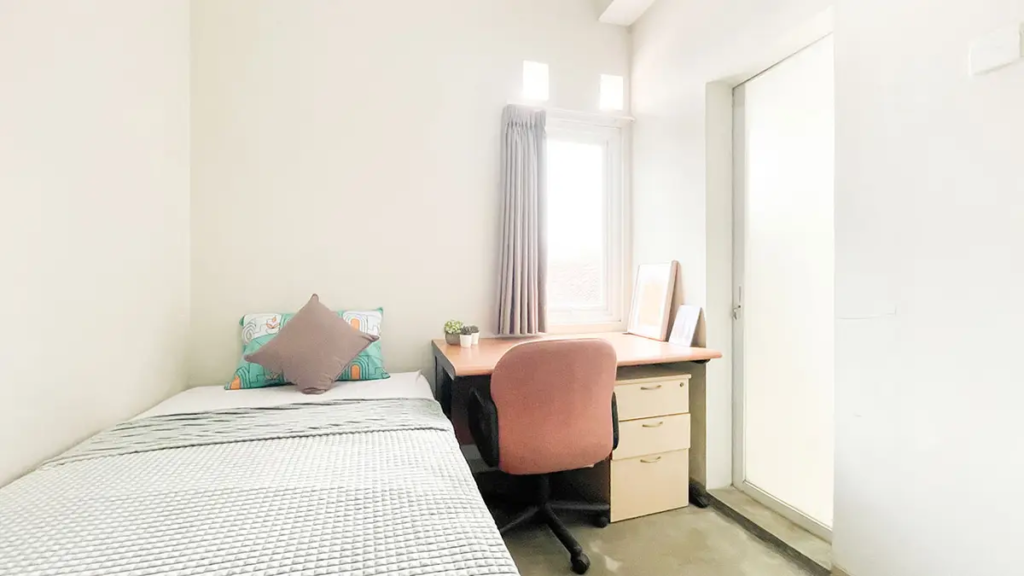 Kamarnya sudah fully furnished, lengkap dengan kasur, AC, Wi-Fi, meja, kursi, lemari, dan kamar mandi dalam. Selain itu, kost khusus wanita di Depok ini juga punya ruang komunal yang juga bisa jadi area belajar, lho! Cocok banget untuk para mahasiswi.