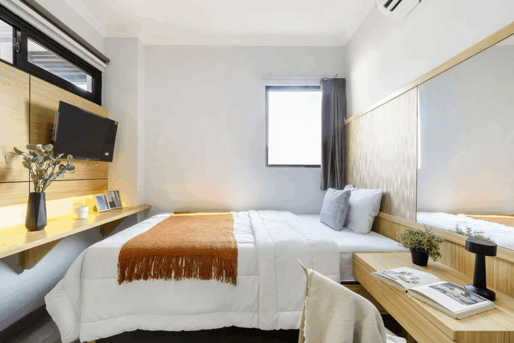 Kamar di Queen’s Simongan ini juga fully furnished dengan AC, TV, kamar mandi dalam, dan dapur bersama yang sudah dilengkapi peralatan memasak. Tipe kamar yang tersedia yaitu Superior Queen yang bisa diisi oleh dua orang. Kamu bisa sharing bersama bestie atau rekan kerja, deh, biar pengeluaran lebih hemat.