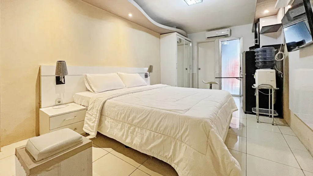 Selanjutnya, kamu juga bisa menikmati hunian eksklusif di Apartemen Podomoro Golf View Tower Cordia, yang menggabungkan kemewahan, kenyamanan, dan lokasi strategis. Unit 2BR ini dirancang untuk memenuhi kebutuhan gaya hidup modern, dilengkapi dengan AC di setiap kamar, ruang tamu dengan sofa, serta dapur yang sudah tersedia minibar, alat masak, dan alat makan.