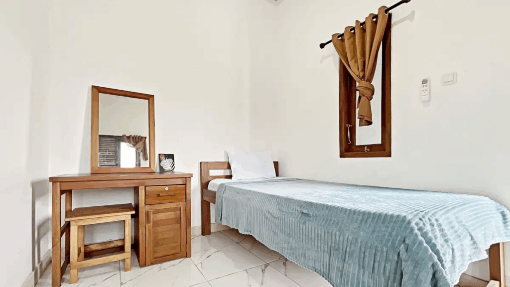 Kenyamanan penghuni juga semakin terjaga berkat layanan room cleaning dan staf housekeeping yang memastikan lingkungan kost selalu bersih dan rapi. Yuk, segera booking unitmu di Rumah Biru Jatiwaringin secara online sebelum kehabisan!