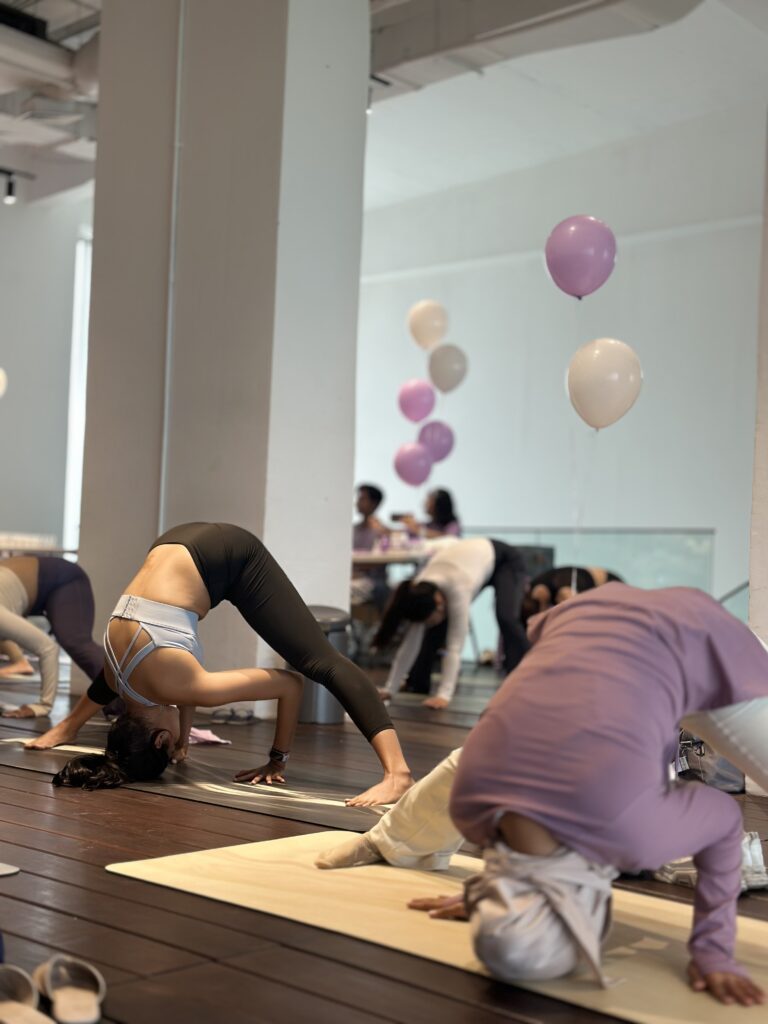 Selama kurang lebih satu jam, para Rukees diajak melakukan berbagai gerakan seperti sun salutation, gentle stretching, hingga pose-pose relaksasi untuk menyeimbangkan tubuh dan pikiran. Instrukturnya memandu dengan jelas dan memastikan setiap Rukees bergerak sesuai kemampuan masing-masing.