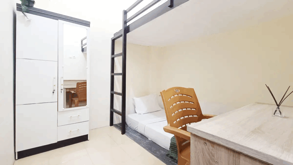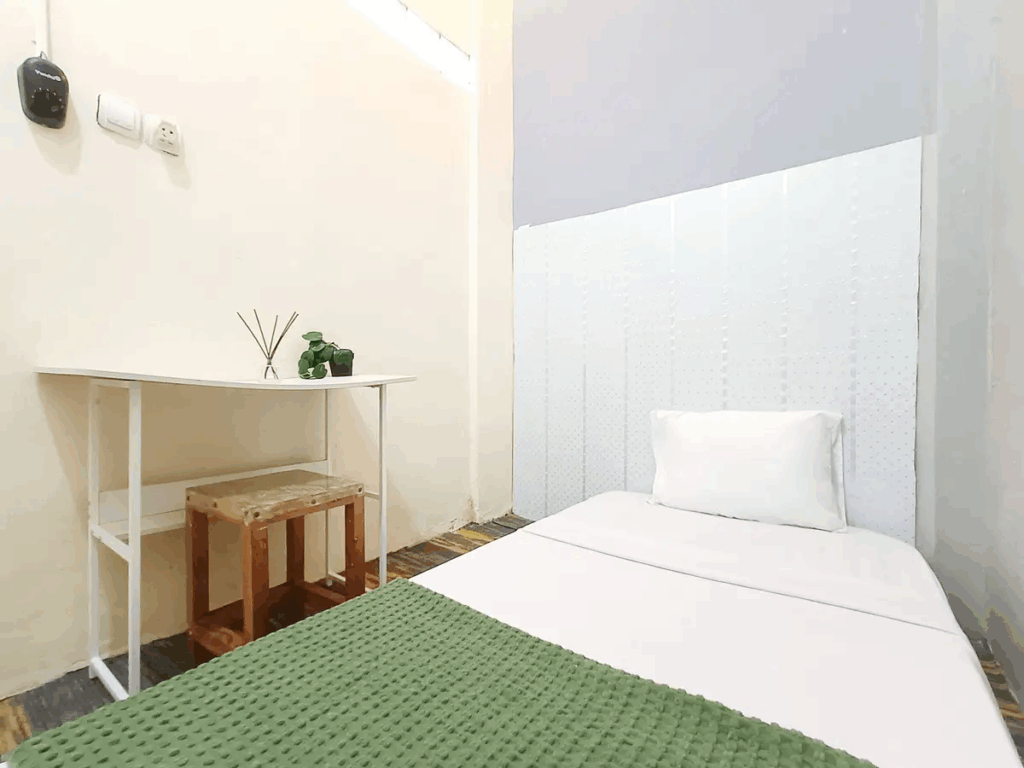 Soal fasilitas, nggak perlu khawatir. Setiap kamar sudah berfurnitur lengkap, dilengkapi AC, Wi-Fi cepat dan stabil, serta kamar mandi dalam dengan shower dan water heater. Ada juga dapur umum yang bisa kamu pakai bareng, lengkap dengan kompor, kulkas, dan dispenser, plus ruang tamu atau area santai buat chill bareng teman kost.