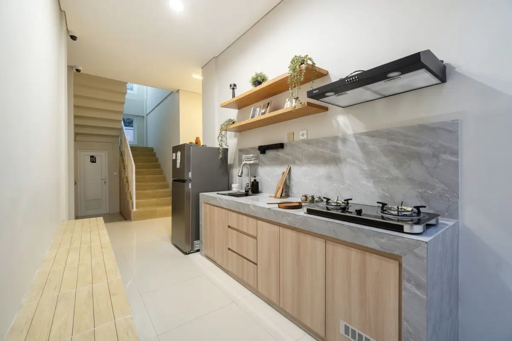 Penghuni juga dapat memanfaatkan berbagai fasilitas bersama yang tersedia. Area dapur telah dilengkapi peralatan dasar seperti kompor, kulkas, dan dispenser sehingga kamu bisa memasak dengan lebih praktis dan hemat. Terdapat juga area komunal yang nyaman untuk bersantai atau berinteraksi dengan sesama penghuni, menciptakan suasana coliving yang hangat tanpa mengganggu privasi masing-masing.