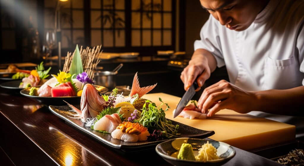When you sit down for omakase style dining, you often face the chef—sometimes at a sushi counter—so you can see your meal prepared in real time. The chef begins with lighter courses, such as sashimi or small appetizers, then progressively moves to cooked dishes, sushi, and dessert. The flow is deliberate, balancing texture, taste, and pacing.